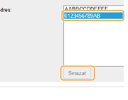Vyberte adresu MAC a klikněte na [Smazat].