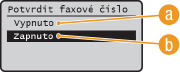 Zobrazení obrazovky s výzvou k potvrzení faxového čísla (pouze imageRUNNER 1435iF)
