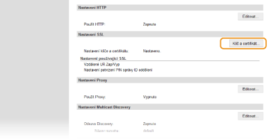Konfigurace nastavení pro páry klíčů a digitální certifikáty).