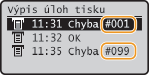 Na hlášení nebo na obrazovce <Monitor stavu> se objeví trojmístné číslo (chybový kód), jestliže dojde k chybě, např. když se nezdaří tisk nebo se zaplní paměť. Níže jsou uvedeny podrobné informace týkající se příčin a řešení pro jednotlivé chybové kódy. Podrobné informace o údajích uvedených na hlášeních a způsob, jak je vytisknout, viz v