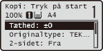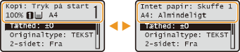 , vises hovedskærmen for den valgte funktion. Hovedskærmen for kopiering er vist som eksempel herunder.