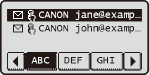 (Adressebog), vises skærmen Adressebog. Brug denne tast, når du vil angive en destination for en fax eller en scanning. Du kan også registrere og redigere destinationer fra denne skærm.