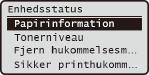 (Papirvalg/Indstillinger) for at vælge det papir, du vil anvende på skærmen <Vælg papir>. Du kan f.eks. også trykke på denne tast for at ændre papirindstillingerne, når du ilægger et andet papirformat eller en anden papirtype end det, der var ilagt tidligere. Bemærk, at papirindstillingen skal være angivet korrekt, så papiret fremføres rigtigt.