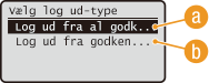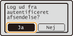 , for at skifte til en anden funktion, end den du aktuelt bruger, vises skærmen herunder til logout-bekræftelse. For at logge af Godkendt afsendelse (faxnings- eller scanningsfunktion) skal du bruge / til at vælge <Ja> og trykke på .![]() |