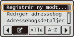 / til at vælge <Registrér ny modtager i adressebog>, og tryk på