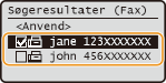 , skiftes inputstatusserne (undtagen ved søgning efter faxnummer).