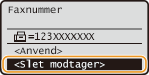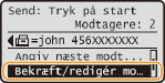 Vælg <Bekræft/Redigér modtager>, og tryk på