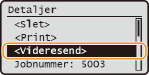 Vælg destinationen for videresendelse fra adressebogen, og tryk på