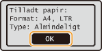 Kontroller, at papirformatet og -typen, der vises på skærmen, er lagt i maskinen, og tryk på