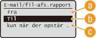Du kan printe en rapport for at tjekke resultatet af en overførsel sendt med e-mail eller gemt på en filserver. Rapporten kan udskrives, enten hver gang en overførsel gennemføres, eller når der opstår en afsendefejl.