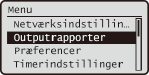 Alle indstillinger om rapporter vises med korte beskrivelser. Standardindstillingerne er angivet med en daggert (  ).