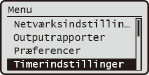 Alle indstillinger for timeren vises med korte beskrivelser. Standardindstillingerne er angivet med en daggert (