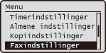 Alle faxindstillinger vises med korte beskrivelser. Standardindstillingerne er angivet med en daggert (
