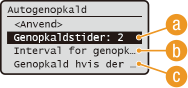 Asterisk (*)Indstillinger, der er markeret med "1*", er utilgængelige, har forskellige indstillingsområder eller har forskellige standarder alt efter købsland eller -område.
