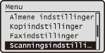 Alle indstillinger om scanningen vises med korte beskrivelser. Standardindstillingerne er angivet med en daggert (