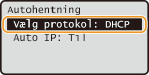 og indstille både <Vælg protokol> og <Auto-IP> til <Fra>. |