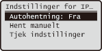 Kontroller, at <Auto-IP> er indstillet til <Til>.