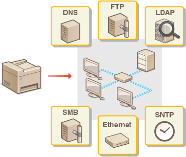 Konfigurationen af et netværk varierer afhængigt af netværkets formål. Maskinen er udviklet til at være kompatibel med så mange netværkskonfigurationer som muligt, og den er udstyret med forskellige teknologier. Kontakt din netværksadministrator, og indstil en konfiguration, der passer til dit netværksmiljø.