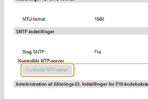 [Netværksindstillinger] [TCP/IP-indstillinger], og klik på [Kontrollér NTP-server] i [SNTP-indstillinger]. Hvis der er etableret en ordentlig forbindelse, vises resultatet, som det er angivet herunder. Bemærk, at denne handling ikke justerer systemuret.![]() |