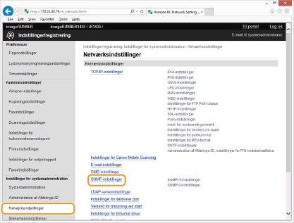 Når SNMP-styringssoftwaren er installeret på en computer på netværket, kan du konfigurere, overvåge og styre maskinen fra fjernlokation via computeren. Du kan få flere oplysninger i betjeningsvejledningen til din styringssoftware.