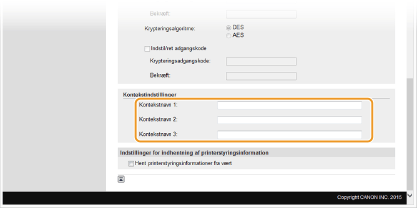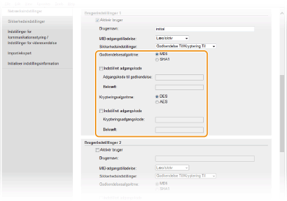 Angiv kun disse indstillinger, når [Godkendelse Til/Kryptering Til] eller [Godkendelse Til/Kryptering Fra] er blevet valgt for [Sikkerhedsindstillinger].