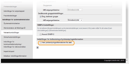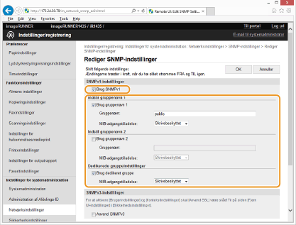 Hvis du ikke bruger SNMPv1Hvis begge SNMP-versioner er deaktiveret, vil nogle af maskinens funktioner ikke være tilgængelige, f.eks. hentning af maskinoplysninger via printerdriveren.