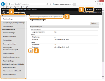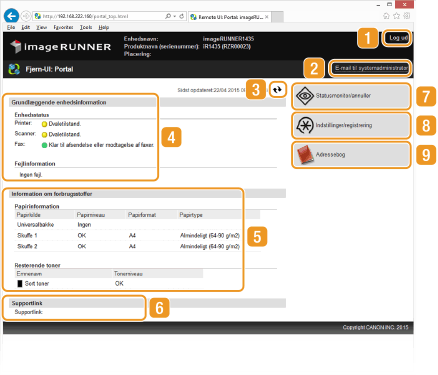 Viser URL'en til websiden til brugersupport, som angivet i [Enhedsinformation] under [Systemadministration].
