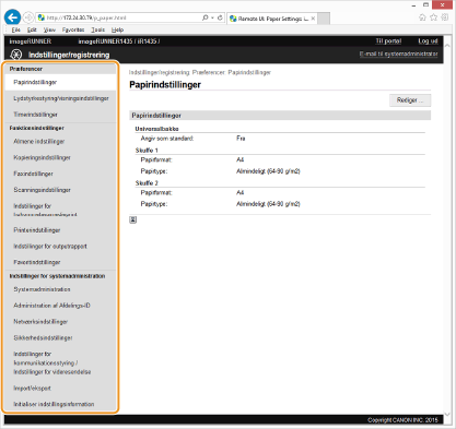 [Indstillinger for systemadministration]