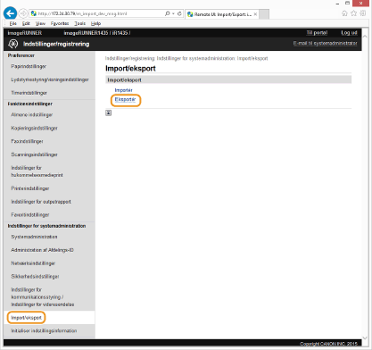 Du kan eksportere data, der er registreret i maskinen, til din computer.