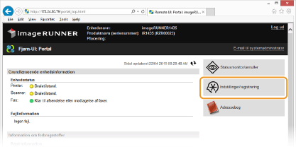 Start Brugerinterface til fjernbetjening, og log på i systemadministratorstatus.
