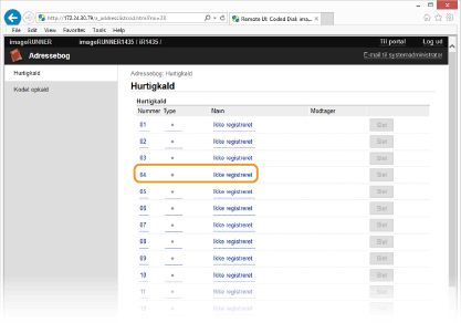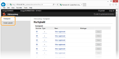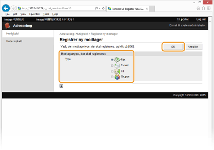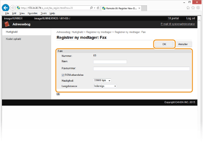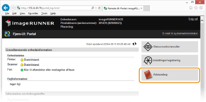 Registrering af adressebogen fra Remote UI