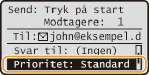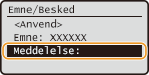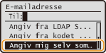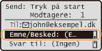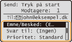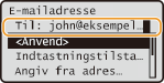 . Brug adressebogen eller en LDAP-server til destinationer i <Til>. Hvis du vil angive destinationer for <Cc> og <Bcc>, skal du bruge adressebogen.