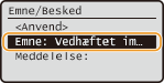 Skriv emnet ved hjælp af taltasterne, vælg <Anvend>, og tryk på