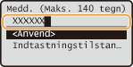 Skriv brødteksten ved hjælp af taltasterne, vælg <Anvend>, og tryk på