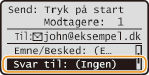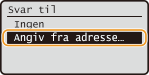 Vælg en svar til-adresse fra adressebogen, og tryk på