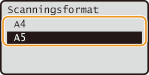 Hvis du bruger imageRUNNER 1435i, og skærmen til angivelse af scanningsindstillinger vises, kan du angive scanningsformatet ved at trykke på