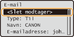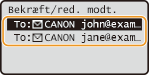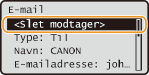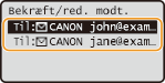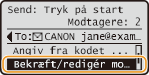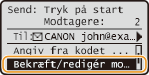 Vælg <Bekræft/Redigér modtager>, og tryk på
