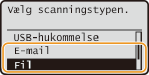 til at vælge <E-mail> eller <Fil>, og tryk på