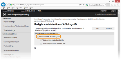 Marker afkrydsningsfeltet [Brug administration af afdelings-id'er], og klik på [Indstillinger] til højre for feltet.