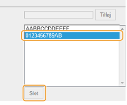 Indtast MAC-adressen i tekstfeltet [Adresse til registrering:], og klik på [Tilføj
