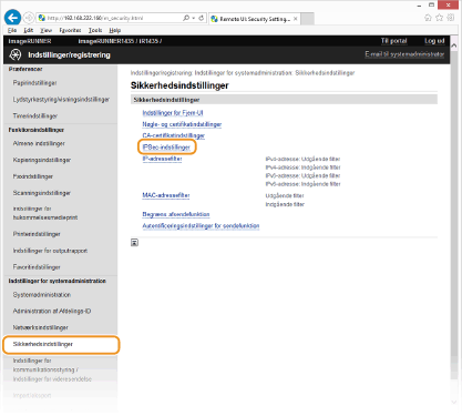 Brug af IPSec med IP-adressefilterIndstillinger for IP-adressefiltret anvendes før IPSec-politikkerne.
