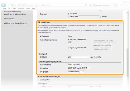 Angiv indstillingerne [Gyldig til:], og [Autentificering:]/[Kryptering:]/[DH-gruppe:].