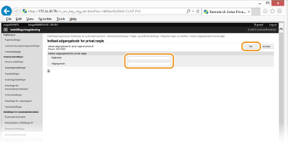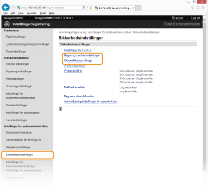 [Nøgle- og certifikatindstillinger] (for nøglepar) eller [CA-certifikatindstillinger] (for CA-certifikater).