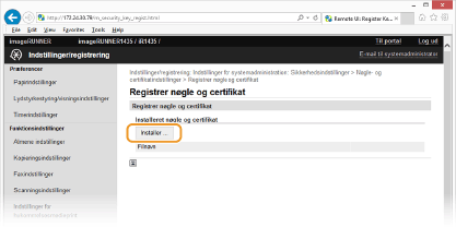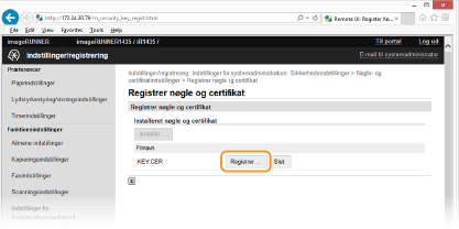 Klik på [Registrer nøgle og certifikat] eller [Registrer CA-certifikat].
