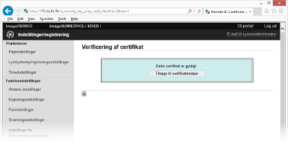 Resultatet fra bekræftelsen af certifikatet vises som angivet herunder.