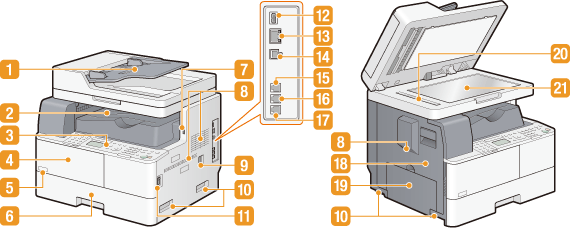 USB-mäluseadme saate ühendada seadmesse ja sellest otse andmeid printida. Seadmega skannitud dokumendid saab samuti salvestada otse USB-mäluseadmesse.