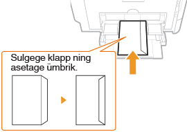 Asetage ümbrikud (Monarch, COM10, DL või ISO-C5) püstpaigutusega (lühike serv seadme poole) ja liimita külg (esikülg) all. Ümbrike tagaküljele ei saa printida.