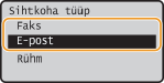 Valige <Faksinumber> või <E-posti aadress> ja vajutage siis klahvi