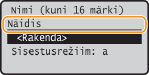 Sisestage numbriklahvide abil nimi, valige <Rakenda> ja vajutage klahvi