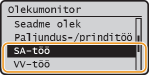 abil <SA-töö> või <VV-töö> ja vajutage klahvi